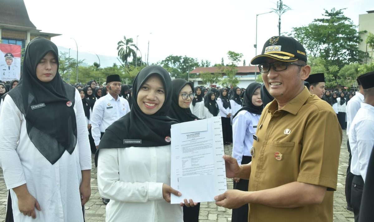 KITASIAR.com – Sebanyak 2.825 Pegawai Pemerintah dengan Perjanjian Kerja (PPPK) di lingkungan Pemerintah Kota Padang, Sumatera Barat (Sumbar) menerima surat keputusan (SK) dari Wali Kota Padang Hendri Septa di Lapangan Apeksi, Kota Padang, Senin (6/5/2024).