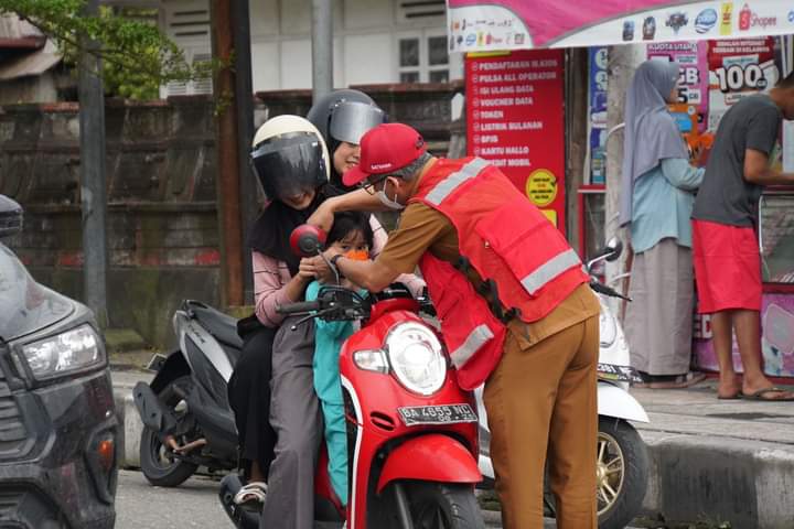 KITASIAR.com – Mengatasi dampak abu erupsi Gunung Marapi yang melanda Kota Padang Panjang beberapa hari ini, Badan Penanggulangan Bencana Daerah (BPBD) Kesbangpol bersama Palang Merah Indonesia (PMI) dibantu Dinas Perhubungan (Dishub) setempat melakukan pembagian masker serentak, Senin (4/3/2024).