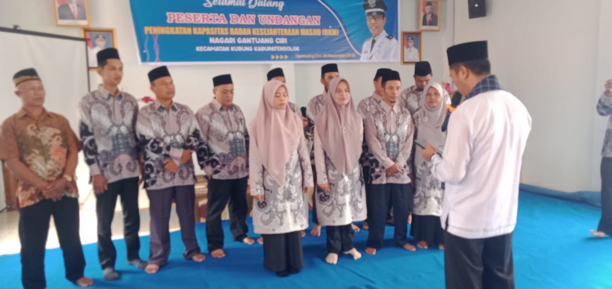 Pengukuhan tersebut dipimpin oleh Ketua Badan Kesejahteraan Masjid (BKM) Kecamatan Kubung bertempat di Aula Kantor Wali Nagari Gantung Ciri, Sabtu (25/11/2023).