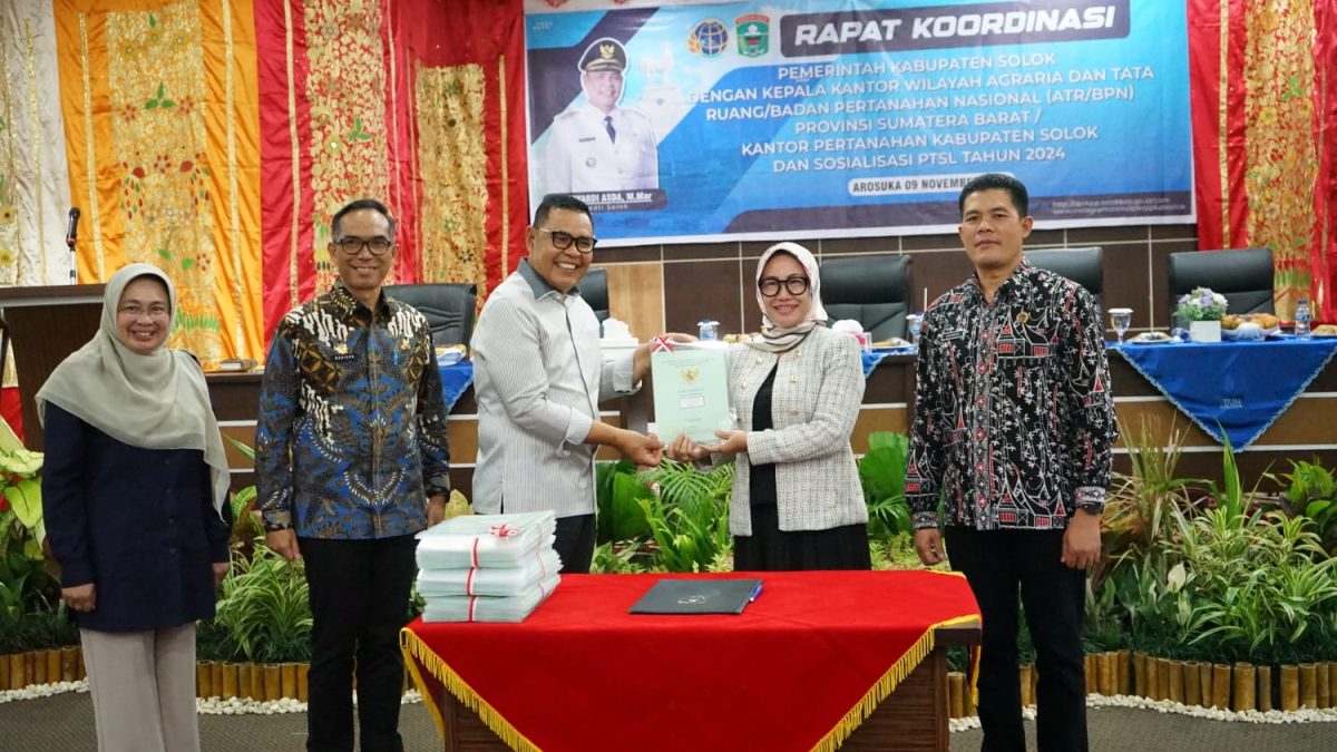 Hal itu ditegaskan Bupati Solok, Epyardi Asda saat membuka Rapat Koordinasi Pemerintah Kabupaten Solok bersama Badan Pertanahan Nasional (BPN) Wilayah Sumatera Barat serta Sosialisasi Pendaftaran Tanah Sistematis Lengkap (PTSL) Tahun 2024, di Gedung Solok Nan Indah, Arosuka, Kamis (9/11/2023).