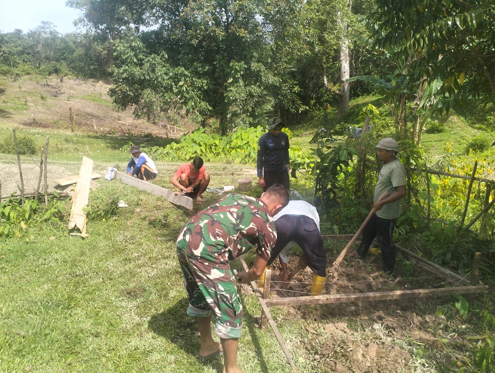 Pengerjaan dilakukan secara gotong royong bersama warga setempat. Hingga kini, progres pembangunan terus berjalan sesuai tahapan.