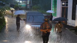 Sekretaris Daerah, Mawardi Roska sempat berbincang santai dengan Wamen ditemani deru hujan.