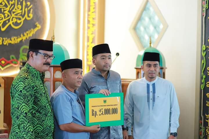 Di samping itu, Wagub menyampaikan bahwa kedatangannya bersama rombongan ke Masjid Darusalam Kelurahan Nan Balimo, juga untuk menyerahkan bantuan pembangunan Masjid Darusalam berupa uang tunai sejumlah Rp25 juta, sarung, mushaf Al-Quran dan biskuit makan tambahan balita.