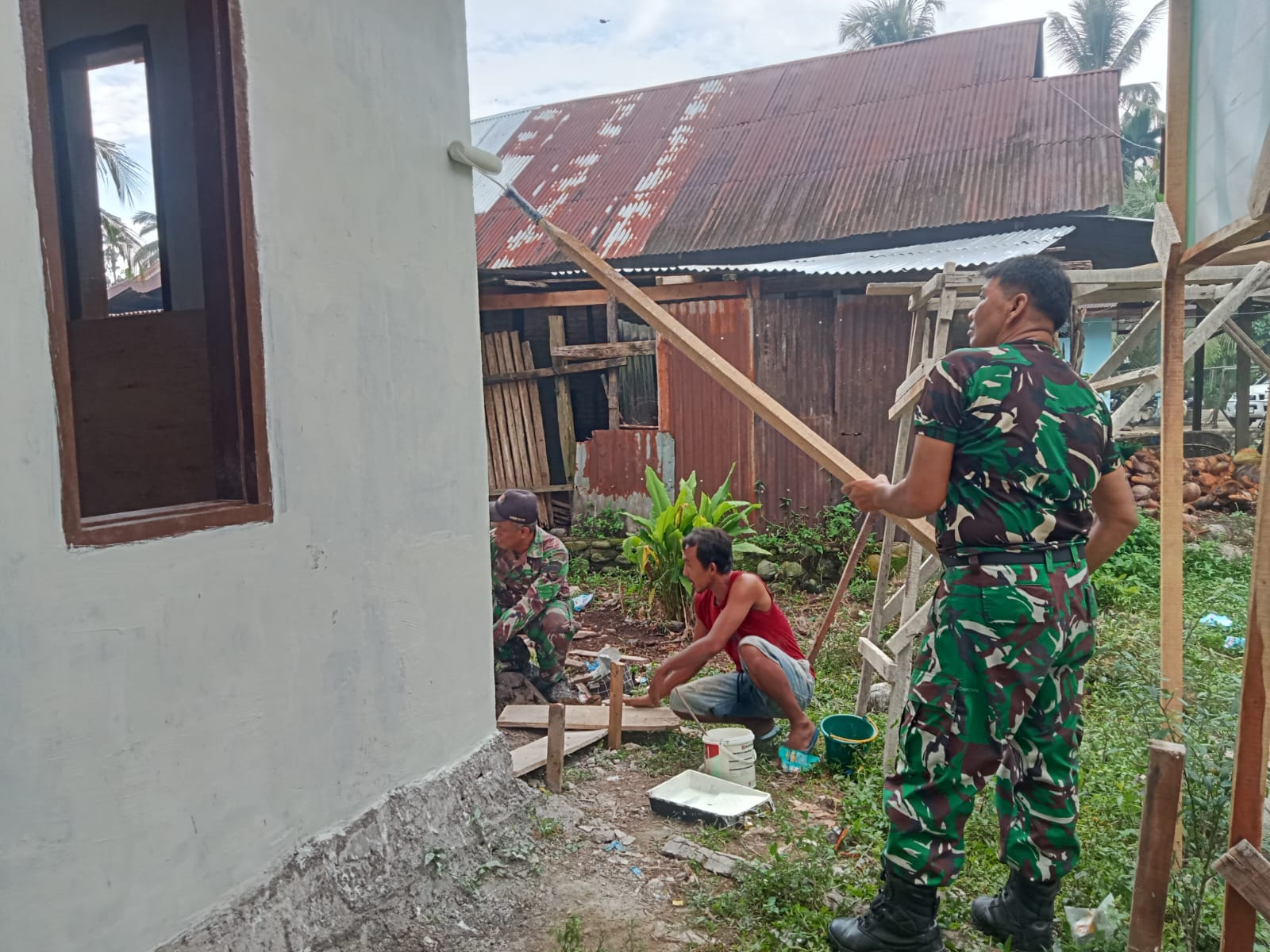 “Pengecatan dan pengecoran teras ini dilakukan dengan semangat gotong royong antara personel Satgas TMMD dan masyarakat setempat,” kata Sertu Hendrijon.