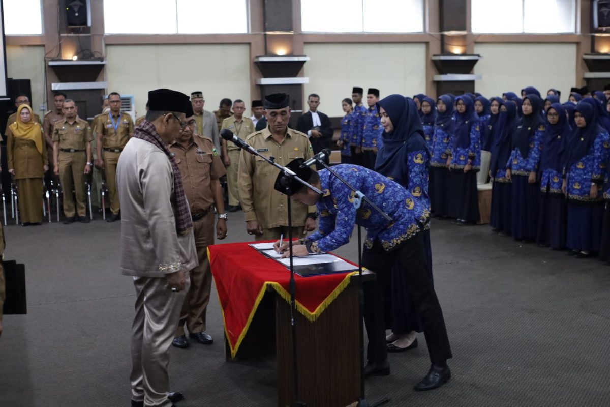 Pengambilan sumpah serta janji pengangkatan pertama CPNS Formasi 2021 menjadi PNS di lingkungan Pemerintah Kabupaten Solok dilakukan langsung oleh Bupati Solok, Epyardi Asda.
