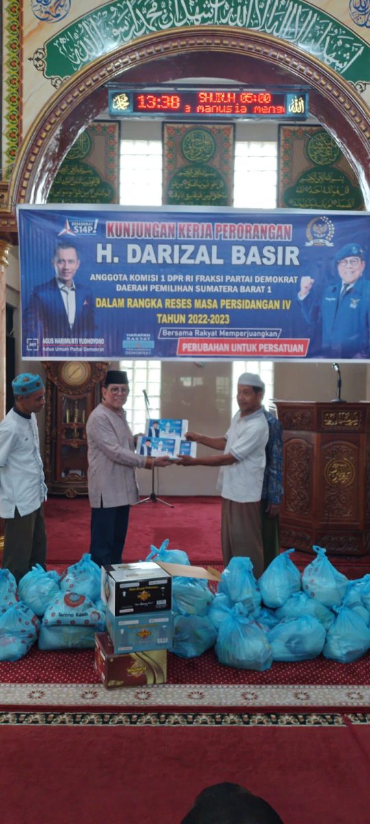 KITASIAR.com – Dalam rangka kunjungan kerja perorangan (Kunker) H Darizal Basir anggota Komisi I DPR RI Fraksi Partai Demokrat bagi 1000 paket sembako dan kain sarung untuk garin dan jemaah masjid.