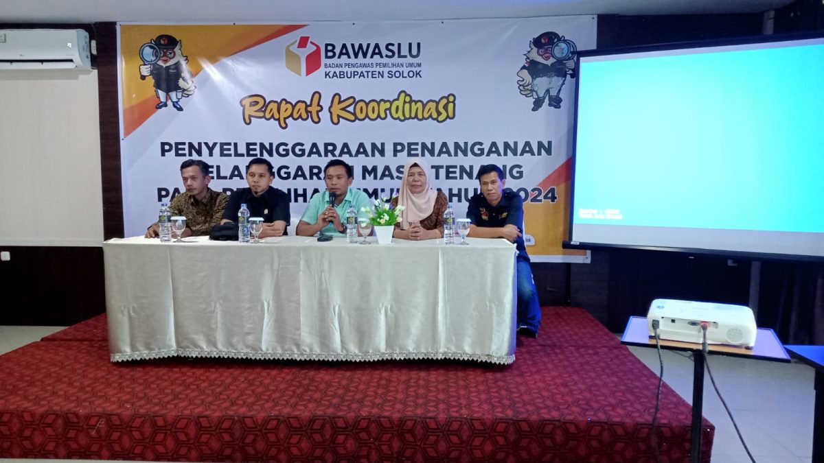 Turut hadir dalam rakor itu, Koordinator Divisi Penanganan Pelanggaran dan Penyelesaian Sengketa Bawaslu Kabupaten Solok, Ir.Gadis, Koordinator Divisi Hukum, Pencegahan, Partisipasi Masyarakat dan Humas (HPPH) Bawaslu Kabupaten Solok, Haferizon, Kepala Divisi Hukum KPU Kabupaten Solok, Defil, serta Panwascam se-Kabupaten Solok. (Deni).