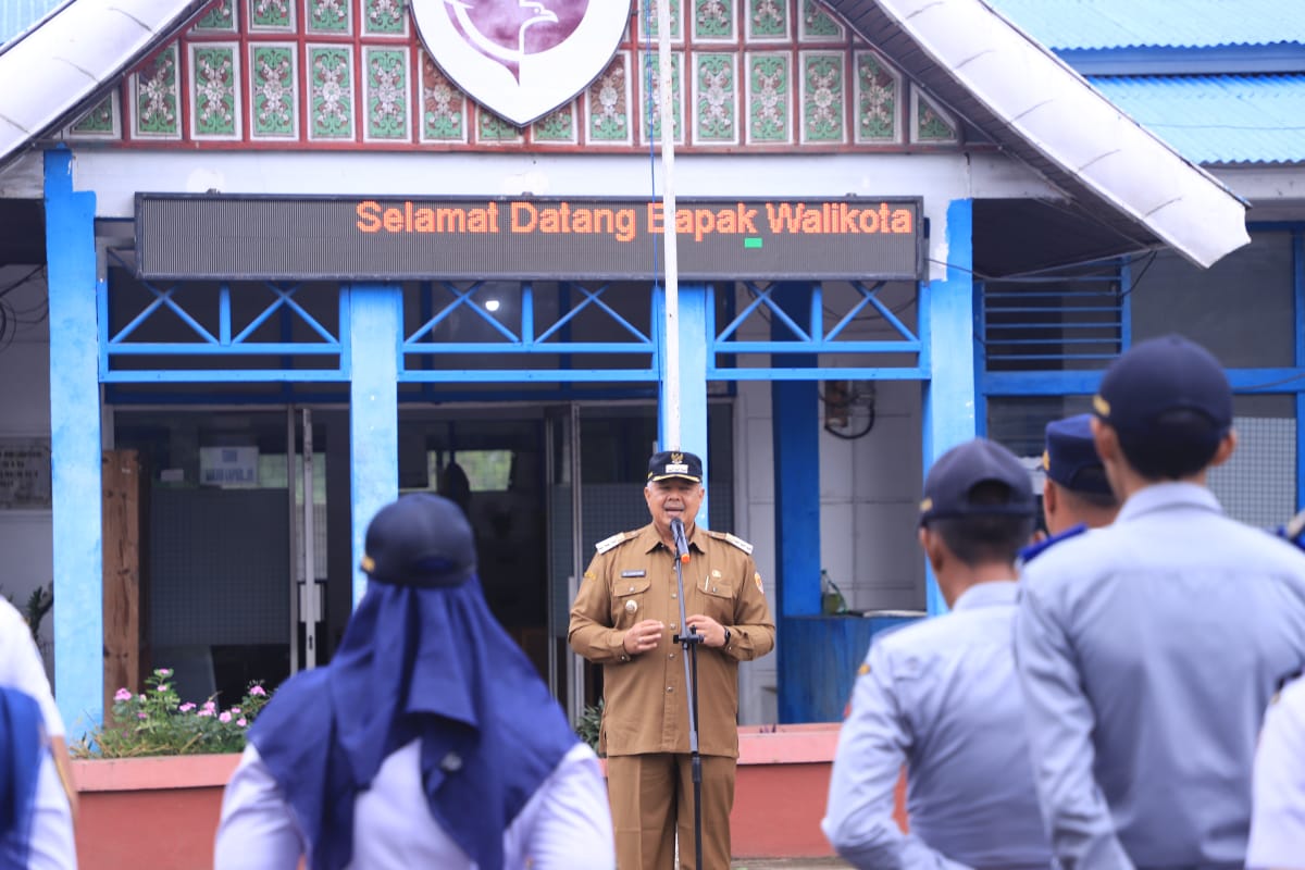 KITASIAR.com – Wali Kota Solok, Zul Elfian Umar memimpin apel pagi di Dinas Perhubungan (Dishub) Kota Solok, Senin (4/3/2024).